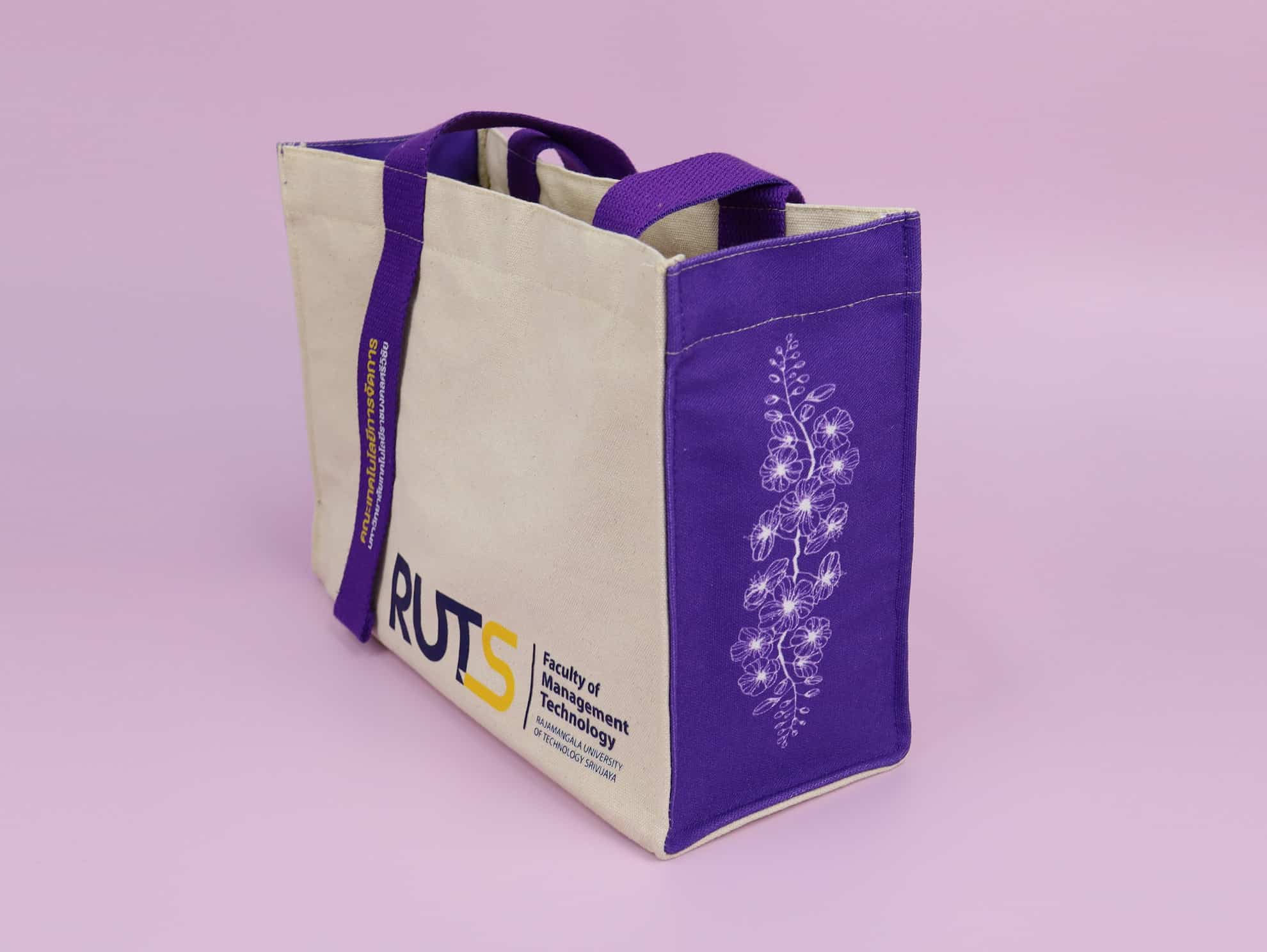 ขนาดถุง กว้าง 15นิ้ว สูง 12นิ้ว ข้าง-ฐาน 4นิ้ว ผ้าแคนวาส สกรีนโลโก้ 2 สี 1จุด หูกระเป๋าผ้าเดียวกับตัวกระเป๋า หูกระเป๋ากว้าง 1นิ้ว ยาว 20นิ้ว แพ็คถุง 1:1 ขั้นต่ำในการสั่งผลิต 200 ใบ ระยะเวลาผลิต 20-30 วัน